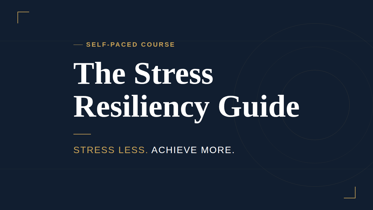 A self-paced course teaching the Stress Resiliency System — three interconnected pillars of mindset, skills, and community that train your nervous system to handle more pressure over time. Built for high-achieving professionals who are done letting stress run the show.